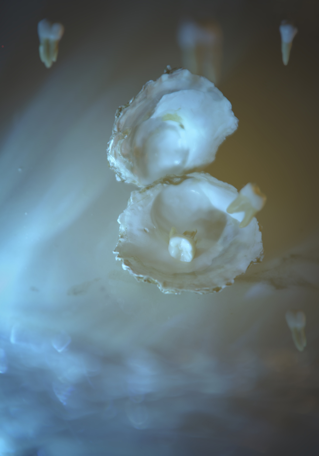 Zähne sinken ins Meer, vom Salz umarmt, von Wellen geformt.